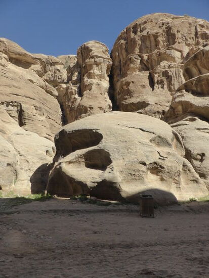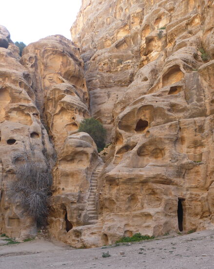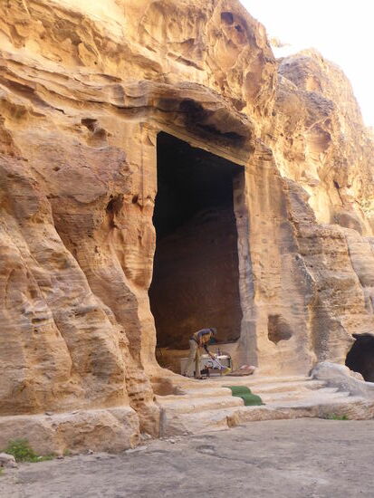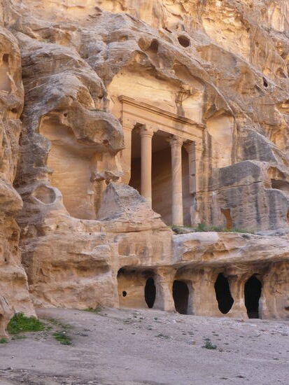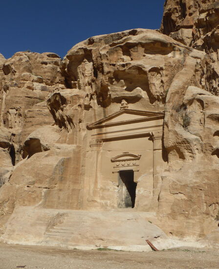 Klein Petra oder Siq el-Barid wirkt fast wie eine kleine Version der Nabatäerstadt Petra, in deren direkter Nähe sie liegt. In Wahrheit war sie aber ein Karawanenrastplatz vor Petra. Hier haben die Karawanen vom Mittelmeer und vom Roten Meer gerastet und ihre Waren umgeschlagen. Der lange schmale Siq, der Zugang zu Petra, ist für Kamelkarawanen zu eng. Die Lage von Klein Petra ist günstig gewählt. Der Zugang erfolgt über eine enge Schlucht die durch eine Tü verschlossen werden konnte und davor befindet sich ein großer, ebener Platz. Ideal für die vielen Kamele. Das Wasser kam unter anderem aus einer in den Fels gebauten Zisterne in der Nähe. Die Zisterne ist offen und kann ebenfalls besichtigt werden.