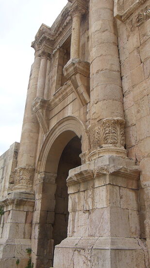 Nach einem zwangsweisen Zugang durch einen riesigen Souvenirshop erreicht man zunächst das dreiteilige Hadrianstor. Der heutigen Erscheinung fehlen die oberen Teile, denn das Tor hatte einmal die stattliche Höhe von 21,5 m (fast neun heutige Stockwerke!) und nahm für seine drei Tore eine Breite von 25 m ein.