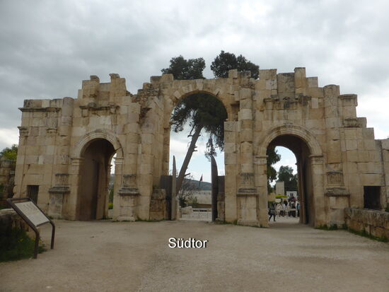 Ein längerer Weg führt zum eigentlichen Stadtbezirk, den man durch das Südtor betritt. Das dem Hadrianstor ähnliche Südtor war eines von insgesamt vier Toren in der 3.5 km langen und 2.5 m breiten Stadtmauer aus dem 1.Jh. n.Chr..