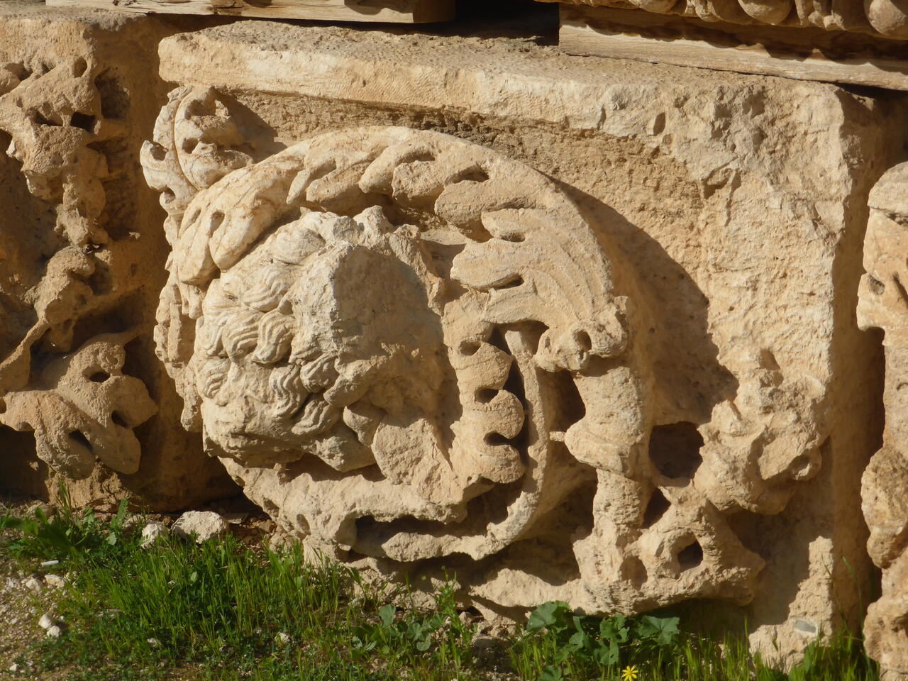Der Zeustempel lag auf einer Anhöhe, erkennbar ist noch das Podest und die Säulen der Front. In byzantinischer Zeit wurde das Gelände geplündert und die Bauelemente in den zahlreichen Kirchen und weiteren öffentlichen Gebäuden der Stadt verwendet. Einiger Schaden entstand auch, als die lokale Bevölkerung hier nach verborgenen Schätzen suchte...