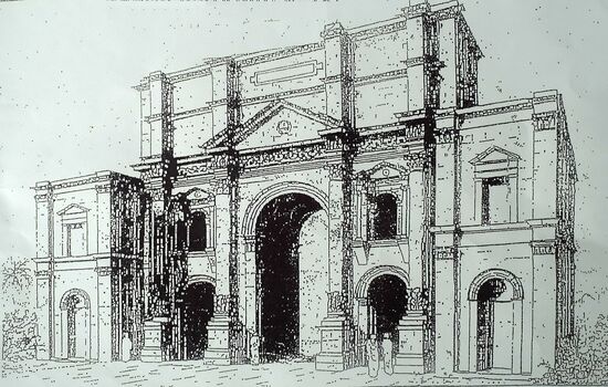 Auch zur Errichtung des Ovalen Forums war die Erschaffung eines Sockels erforderlich, der mit 6-8 m Höhe eine Senke des Geländes ausgleichen musste.