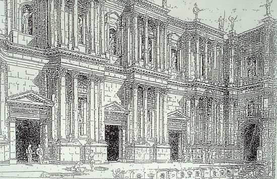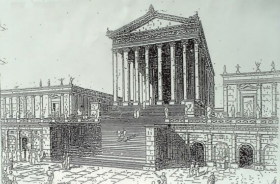 Noch immer ist das Forum mit den Original-Steinplatten gepflastert und von ca. 60 ionischen Säulen begrenzt - ein architektonisch beeindruckender Anblick. Die Säulen tragen Namensinschriften der 'edlen Spender'.