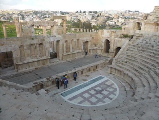Nur wenige Schritte weiter nördlich können wir das Nordtheater 'von oben' betreten, das zunächst (nur) 800 Zuschauern Platz bot. Das Nordtheater entstand wahrscheinlich um 164 n.Chr. zunächst als Versammlungshalle für den Stadtrat und wurde später in ein Odeion oder Theater mit 14 Sitzreihen erweitert. Als einzigartiges Detail fand man in gewissen Sitzreihen die Namen der Patrizierfamilien der Stadt eingraviert. Im 3. Jh. wurde das Theater dann mit einem zweiten Rang auf 1600 Sitzplätze erweitert, die jedoch bei einem Erdbeben im 6. Jhdt. einstürzte. .