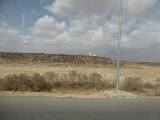 Die heutige Tour führt nach Osten, die Wetterapp sagt Regen voraus. Jedoch wenn wir Glück haben, zieht das Regenband zunächst nördlich an Amman vorbei. Hinter Amman beginnt die Hauptstrecke nach Saudi-Arabien und in den Irak. Reihenweise ziehen riesige Trucks übers Land, die Erdöl transportieren. Hier ist schon die Landschaft steppenartig, die allmählich dunkler wird, weil sie durch Basaltlava durchsetzt ist.