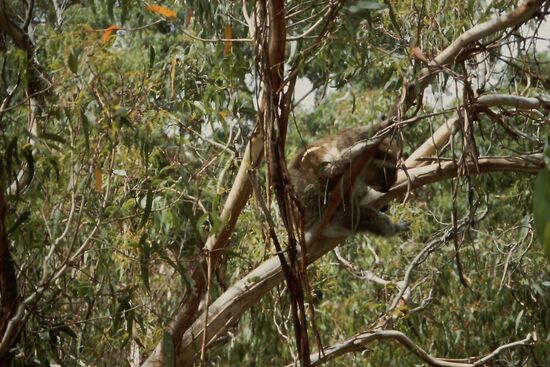 Anschliessend ging es noch zum Koala Observation Center, wo wir vom Tree Top Boardwalk die Koalas bestaunen konnten, die frei in den Eukalyptusbäumen leben - entweder fressen sie oder sie schlafen...