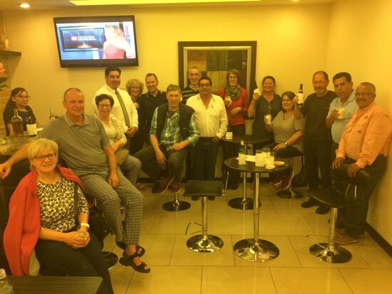 Vor der Flughafengebäude steht René mit einem grossen Bus. Damit werden wir die nächsten Tage unterwegs sein. Jetzt ist die Fahrt zum Hotel nur kurz. Bald haben wir unsere Zimmer bezogen, Inzwischen sind 24 Stunden vergangen, seit ich mein Haus verlassen haben, dazwischen liegen 10'000 km und 8 Stunden Zeitunterschied. Bevor wir endlich in den verdienten Schlaf fallen, treffen wir uns noch an der kleinen Bar zu einem Schlummertrunk. Gallo heisst das einheimische Bier. Hahn. Listo findet es sympatisch.