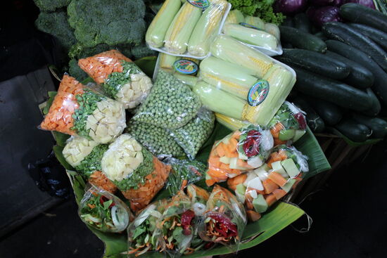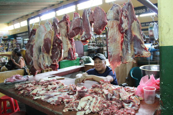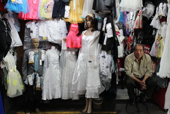 Es ist ein riesiges Gedränge. Wir brauchen wieder einmal Ellenbogen und Hüften, um uns durchzuarbeiten. Jedenfalls beim Gemüse und den Früchten. Bei den Kleiderständen kann man etwas besser durchatmen. Und auch mal auf etwas aufmerksam machen. Auf die wunderschönen weissen Kleider zum Beispiel, die für die erste Kommunion angeboten werden. Oder die festlichen Kleider für den wichtigen 15. Geburtstag der Mädchen. Der Verkäufer erklärt uns das mit diesem Brauch gern.