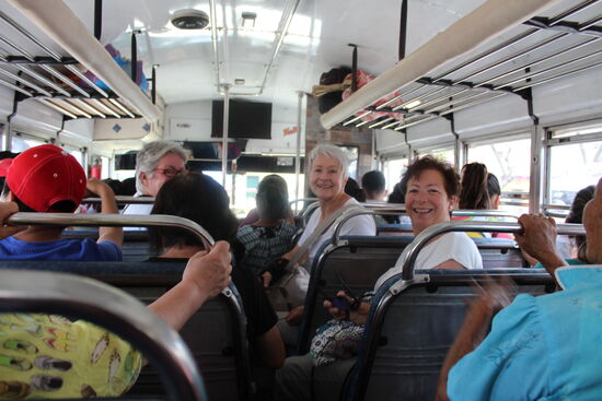 Natürlich wird die Rückfahrt mit dem Chickenbus genau so aufregend wie die Hinfahrt. Als wir einsteigen, ist der Bus schon voll. Doch wir wissen jetzt wie es geht, wie man sich irgendwo dazwischen drängt.