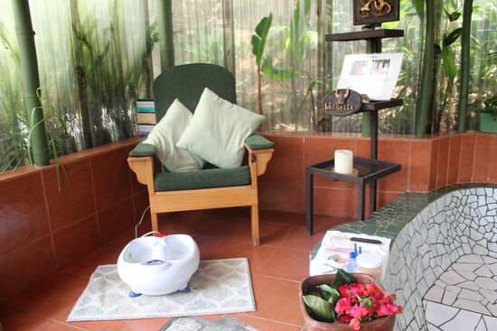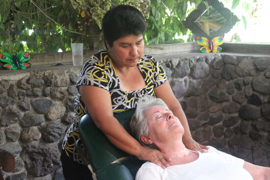 Die Produkte kann man im kleinen Shop kaufen und sich auch gleich einer Gesichtsmassage unterziehen. Wir haben Wellness-Tag heute und so geniessen wir die angenehme Behandlung. Es gibt auch einen kleinen Spa, doch leider ist nur eine Masseurin da, die auch gleichzeitig Pedicure und Manicure macht.