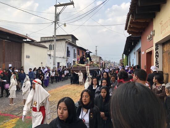 Es hört überhaupt nicht auf. Die Prozession ist irgendwo noch unterwegs, in jeder Strasse wartet eine neue Überraschung, Teppiche oder die Prozession, die alles wieder zerstört.