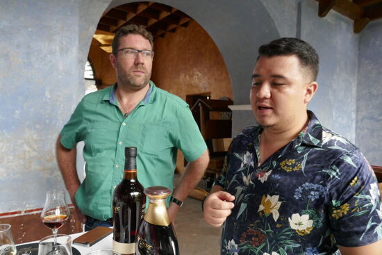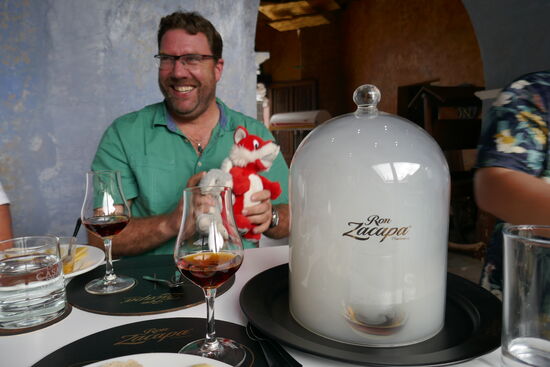 Am Nachmittag bei der Rum-Degustation waren die beiden dann allerdings wieder sehr interessiert dabei. Bekamen auch beide ein passendes Glas. Jedenfalls, wenn Edwin nicht gerade hinsah, denn der konnte mit unseren Spielereien nicht viel anfangen und verzog nicht einmal den Mund, wenn wir unsere Spassfotos machten. Komische Truppe, hat er sich wohl gedacht.