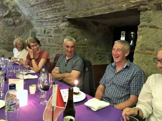 Köbi hat heute Geburtstag und hat uns zu einem Apero eingeladen. Hoch soll er leben, dreimal hoch und Happy Birthday muss er sich von unserem begeisterten Chor auch noch anhören.