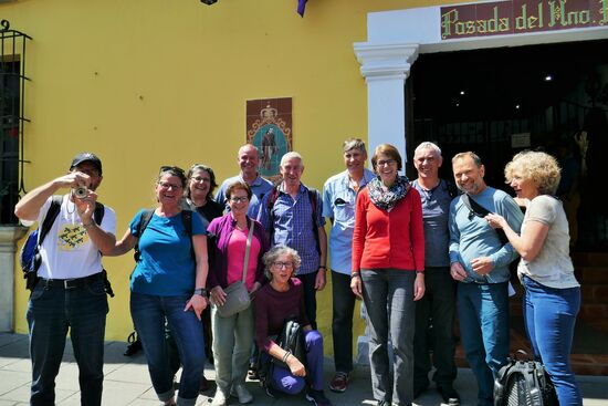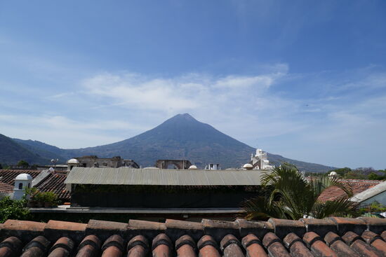 Am Morgen holt uns Ismael mit dem Bus um 10.00 Uhr ab. Für mich Zeit, um noch einen kurzen Spaziergang durch Antigua zu machen, noch einmal in die Bodega zu gehen, um schwarze Bohnen zu besorgen. Andere gehen zum Casa Santo Domingo um die Räumlichkeiten bei Tag noch einmal zu sehen und andere geniessen den Blick von der Dachterrasse des Restaurants, wo sich heute vor einem blauen Himmel die Vulkane in ihrer ganzen Pracht zeigen.