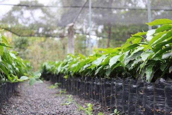 Die jungen Pflanzen stehen zum Verkauf an die Kaffeebauern bereit-