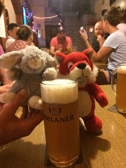Zurück im Hotel macht René den Vorschlag, seinen Freund Thomas aus Sachsen zu besuchen. Er führt im Ort ein kleines Kellerlokal mit eigener Brauerei. Ich verziehe mich indessen ins Restaurant, wo das Internet erträglich schnell ist und mithilfe von zwei Pinacoladas entsteht der Bericht von gestern.
