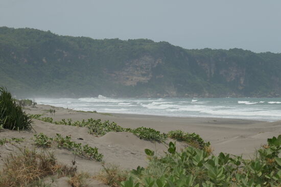 Man muss ca. 45 min mit dem Moped fahren, um an einen Strand zu gelangen. Unser erster Kontakt mit dem Meer in diesem Urlaub, wir freuen uns sehr.