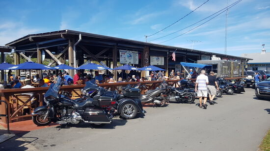Am Nachmittag mache ich noch einen Rundgang "Salt Marsh Trails". Das sind schöne schattige Wanderwege, nur leider kaum 2 km lang. Dann folgt noch ein Rundgang durch den Ort, beim bekannten Lokal Mac Rae's ist gerade ein Biker-Treffen mit Livemusik.