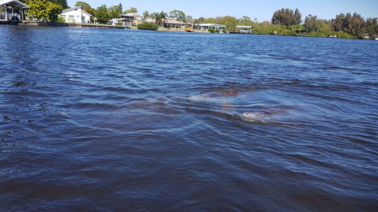 Nachmittags mache ich eine Paddeltour im Ruskun Inlet und um die Insel Snake Island vor dem Pirate's Point herum. Gleich am Eingang zum Ruskin Inlet "verfolgen" mich drei spielfreudige Manatees.