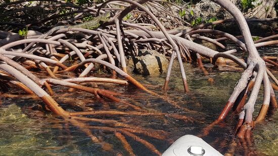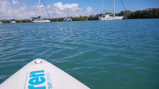 Nach dem Besichtigen der Strände lande ich am "Little Harbor". Der sieht recht einladend für eine kurze Paddeltour aus. Außerhalb der Hafenbucht wird es an diesem Tag allerdings recht windig. In den Mangroven sind zahlreiche Leguane zu sehen und mitten im Hafen tummelt sich eine Seekuh, hier Manatee genannt.