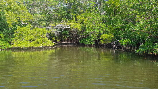 Heute lasse ich das Auto mal stehen und mache eine Paddelrunde gleich vom Quartier aus bis zum Bayview Park. Auf dem breiten Haldeman Creek herrscht doch recht starker Bootsverkehr, ich halte mich in der Nähe der Mangroven. Hier legt auch das Boot zum Keewaydin Island ab.