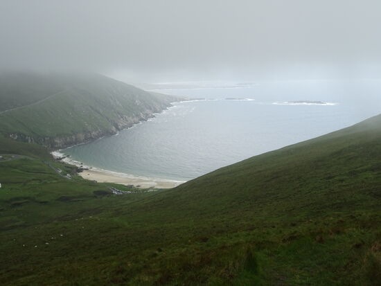 Wir erreichen schließlich Keem. Dort ist eine kleine Bucht mit Sandstrand. Der Ort ist gleichzeitig Ausgangspunkt für eine Wanderung zu den angeblich höchsten Seeklippen Europas.