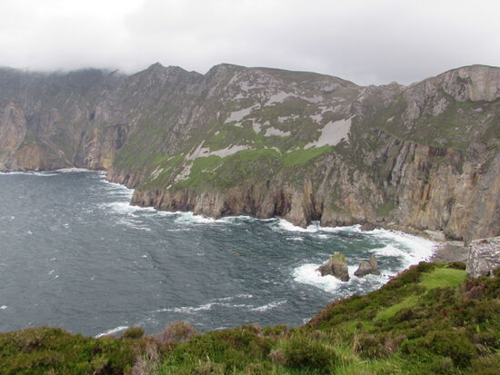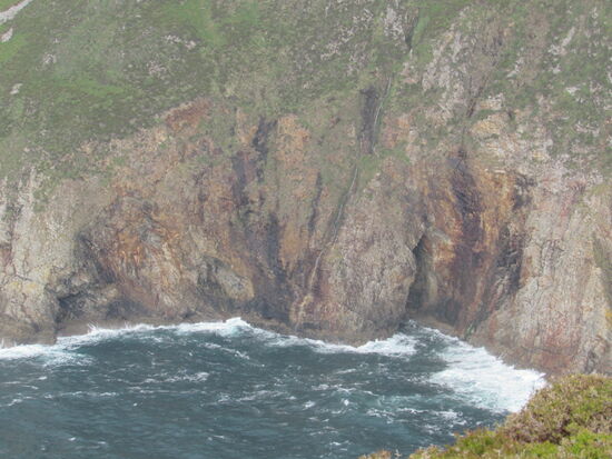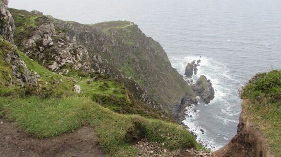 Wir wollen heute zum Slieve Leage. Das sind bis zu 600m hohe Klippen im Westen von Donegal. Diese kann man natürlich nur bei guter Sicht sehen. Auch eine Wanderung dort ist nur bei gutem Wetter möglich. Unser Gastgeber vom Lakeland B&B zeigt uns auf einer Karte welche Routen wir fahren können und welche Alternativen es zu den Klippen gibt. Wir sollen zunåchst auf eine Landzunge bis zum St Johns Point fahren. Wenn wir von dort die Steilküste sehen können, sei es lohnenswert dorthin weiter zu fahren. Wir nehmen seine Ratschläge an und schon sind wir auf der Straße entlang der Küste unterwegs.