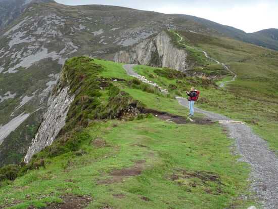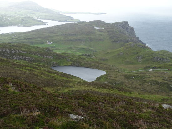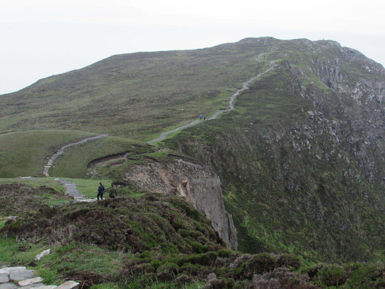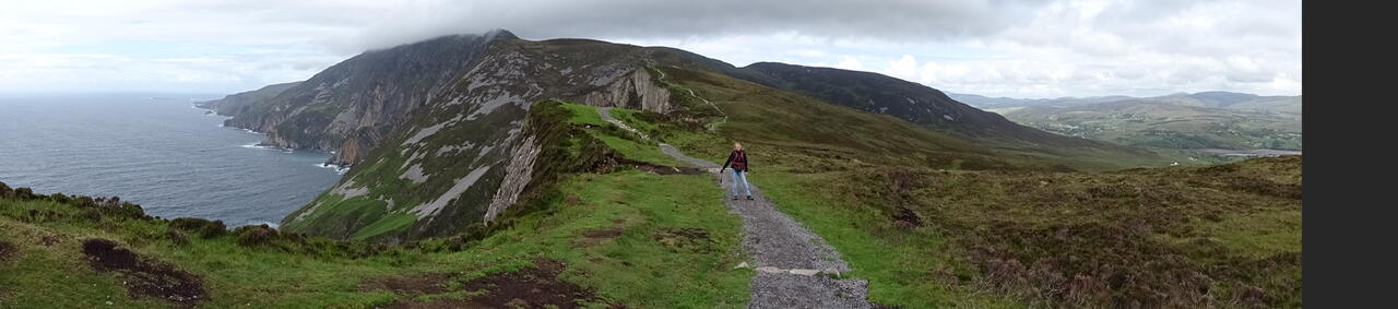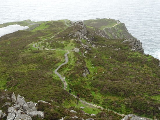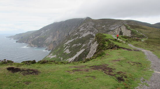 Angesichts der relativ guten Sicht, haben wir beschlossen von hier direkt zu den Slieve Leageus zu fahren. Erstmal geht es wieder runter von der schmalen Landzunge.