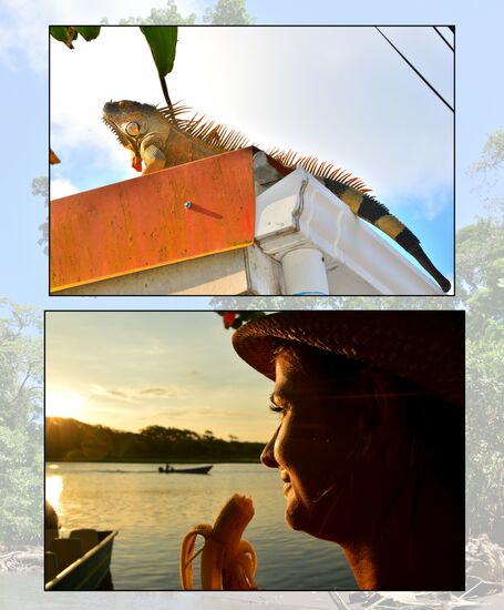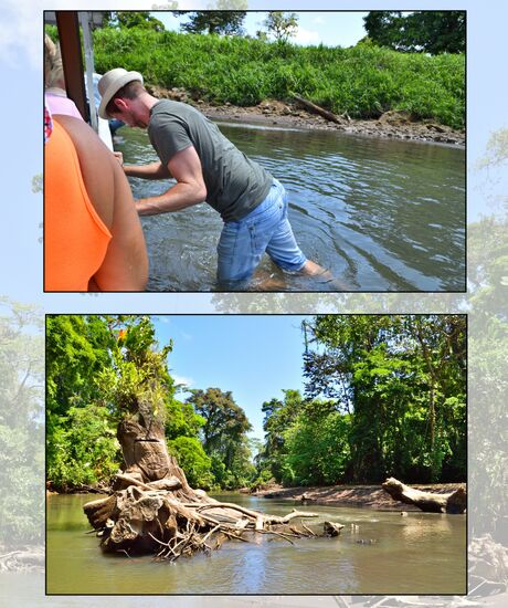 Pavona. Dort können wir unseren Wagen auf dem Parkplatz stehen lassen und mit einem Kanu zu unserer Unterkunft im gleichnamigen Dorf Tortuguero tuckern. In dem kleinen Ort selbst gibt es ebenfalls keine Straßen, Autos usw. - wie sollten die auch dort hinkommen. Ist das Wasser an manchen Stellen besonders flach, müssen die Boote nicht selten mal angeschoben werden. Das hinterlässt vielleicht ein leicht mulmiges Gefühl, denn wir sehen hier und dort ein Krokodil - von verschwundenen Touristen ist uns jedoch nix zu Ohren gekommen