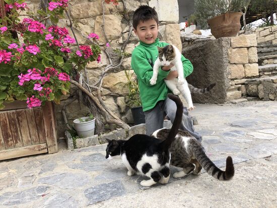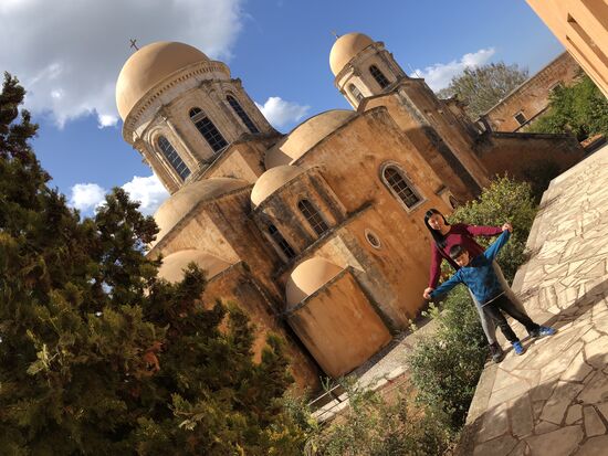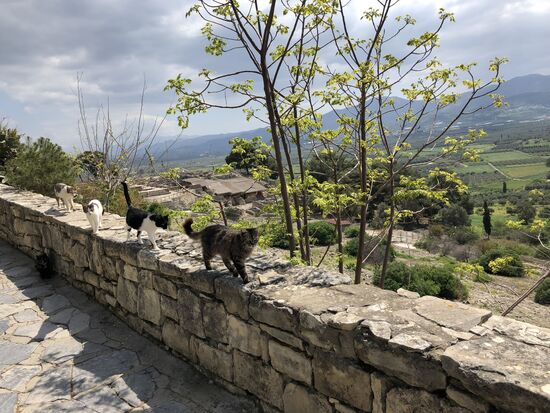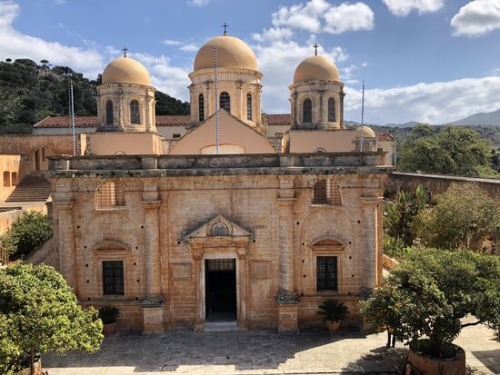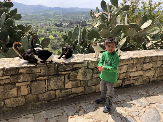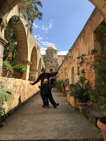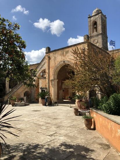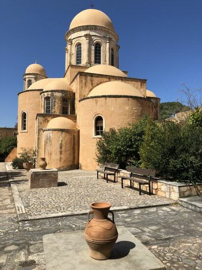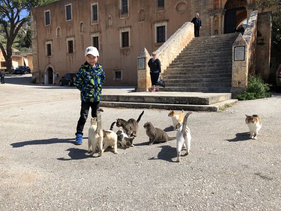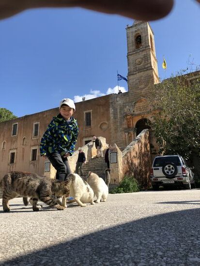In der Nähe vom Flughafen von Chania gibt es noch einen zweiten Ort, der Agia Triada heißt. Diesmal ist es keine Ausgrabungsstätte, sondern ein schönes Kloster. Zur Freude meines Sohnes mit vielen Katzen.
