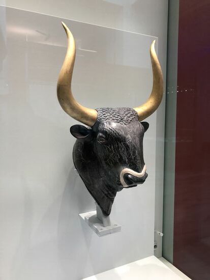 Evtl. war es ein Sport der Minoer, vom Stier die Hörner zu greifen und dann über den Körper der Stiers nach hinten schleudern zu lassen.