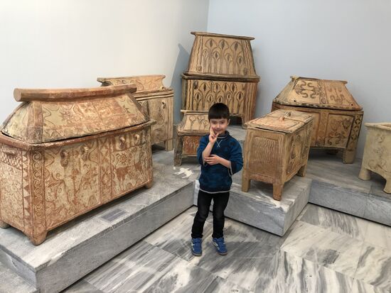Nach einem Besuch in Knossos empfiehlt sich ein Besuch im archäologischen Museum von Iraklio. Wir wollten unbedingt den Diskos von Pheistos sehen, da wir ja einige Tage zuvor in Pheistos waren und fanden das Ding nicht. Nachdem wir fast mit dem Museum fertig waren fragten wir doch einmal eine Mitarbeiterin und sie zeigte uns die Scheibe, die um einiges kleiner war, als wir dachten.