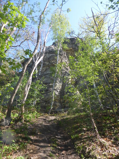 Am Ende des ca. 3,5 km langen Weges steht das 'Hamburger Wappen', eine Felsformation, die dem Hamburger Wappen mit den drei Türmen ähnlich sieht.