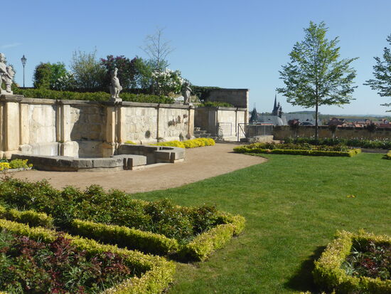 919 wird mit Heinrich I. ein Sachsenherzog erster deutscher König, 922 sein Stammsitz >Quitilingaburg< erstmals urkundlich erwähnt. Nach Heinrichs Tod 936 gründet seine Witwe Mathilde auf dem Schlossberg ein weltliches Damenstift für Töchter aus dem sächsischen Hochadel. Heinrichs Sohn und Nachfolger, Kaiser Otto I., stattet es mit kostbaren Reliquien und reichem Landbesitz aus. Mit dem Königshof und Wipertikloster im Tal, dem Marienkloster auf dem Münzberg, Kirche und Stift auf dem Schlossberg, muss dieses Ensemble ottonischer Macht schon um 1000 beeindruckend gewesen sein. (Dumont)