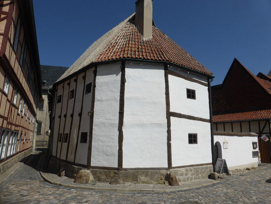 Ganz in der Nähe liegt das in seiner Art bisher einzige Fachwerkmuseum. Es ist wohl das älteste Fachwerk der Stadt und in einem Hochständerbau aus der ersten Hälfte des 14. Jahrhunderts untergebracht. Die Ständer umstellen den Hauskörper ungeteilt vom Sockel bzw. von der Grundschwelle bis zum Dach. Durch die Ständer hindurch sind Deckenbalken "geschossen", die das Haus in zwei Geschosse unterteilen. Herausragende Zapfen mit Holzsplinten sichern gegen Zug- und Schubkräfte.