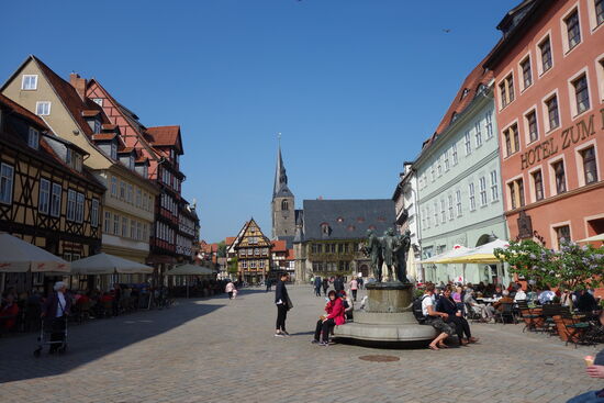 Bald sind wir am Marktplatz, auf dem heute Markt stattfindet.