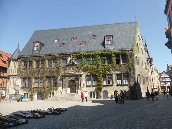 Im Schatten des Schlossbergs entwickelt sich eine bedeutende Kaufmannssiedlung, die schon 994 unter Otto III. Markt-, Münz- und Zollrecht erhält. Nach dem Ende der ottonischen Kaisermacht 1024 übt das reiche Frauenstift noch jahrhundertelang die Herrschaft über die Stadt zu ihren Füßen aus, gegen zunehmenden, aber lange erfolglosen Widerstand der Bürger. (Dumont)