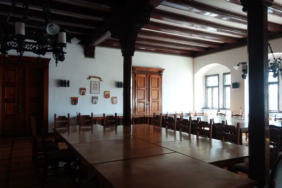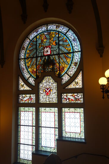 Das 1310 erstmals erwähnte Rathaus verdankt seine heutige Erscheinung einem Umbau von 1616, bei dem auch das prunkvolle Renaissanceportal vorgesetzt wurde. Im Inneren sind besonders die Glasmalereien im Treppenhaus und Wandgemälde im Festsaal sehenswert, beide um 1900 entstanden.