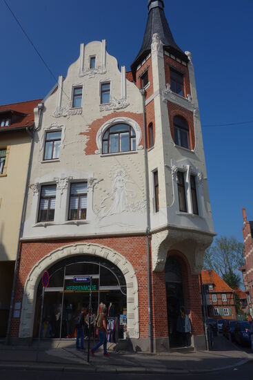 Beim Übergang der Alt- zur Neustadt fällt uns noch ein fantastischer Jugenstilbau auf, den ich natürlich unter die Lupe nehemen muß.