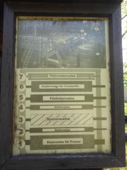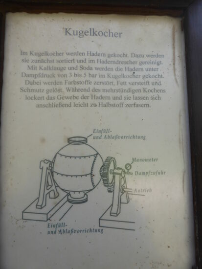 Durch Zufall sehen wir ein Schild, das auf ein Papiermuseum Weddersleben hinweist. Es gehört zu einem Behindertenprojekt und ist frei zugänglich.