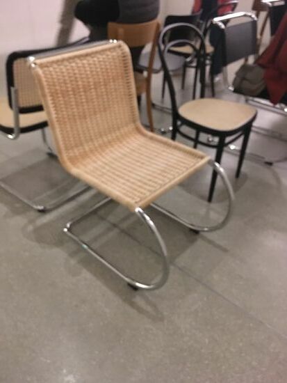 Das Privileg, den Staglrohrsessel als erster künstlerisch gestaltet zu haben, kommt Mart Stam zu der am Bauhäus in Dessau lehrte. Alle hier gezeigten Freischwinger oer drei berühmten Designer werden bis heute als lizensierte Nachbauten in hoher Qualität produziert. Die Stuhle sind Dokumente des damals revolutionären modernen Lebensstils und zugleich ein eindrucksvolles Zeugnis der bis heute fortwährenden Aktualität des Bauhauses. Der eigentliche Bestseller jener Zeit aber ist der schlichte Kuchenstuhl, der sogenannte Frankfurter Stuhl, der für die Frankfurter Köche in den 1930er Jahren entwickelt wurde. In den 1948er und 1950er Jahren wurde dieser Stuhl nicht nur im privaten Bereich, sondern auch in Büros und öffentlichen Verwaltungen eingesetzt. Bis heute produziert, wird er gern auch als Kneipenstuhl genutzt.