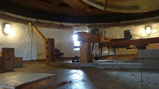 Ebenfalls in Straupitz, die "Holländerwindmühle", die zum europäischen Kulturerbe gehörende letzte produzierende "Dreifachwindmühle" Europas, mit Mahl-, Öl- und Sägemühle. Eigentliche Entstehung 1850, zwischendurch Brände, Verfall, ungeklärte Eigentumsverhältnisse, ab 1994 wurden Wiederherstellungsmassnahmen zur Inbetriebnahme getroffen. Zwischen 2001 und 2003 erfolgte eine Rekonstruktion und Sanierung, auch mit EU Geldern. Heute wird in der Mühle das "Spreewald-Gold" Leinöl produziert. Der Prozess wird anschaulich erläutert, die Besichtigung ist recht interessant, Eintritt 4€, am Ende des Rundgangs eine Kostprobe Leinöl auf Brot, reich an Omega 3, täglich einen Esslöffel, sehr gesund - und geschmeckt hat es auch!