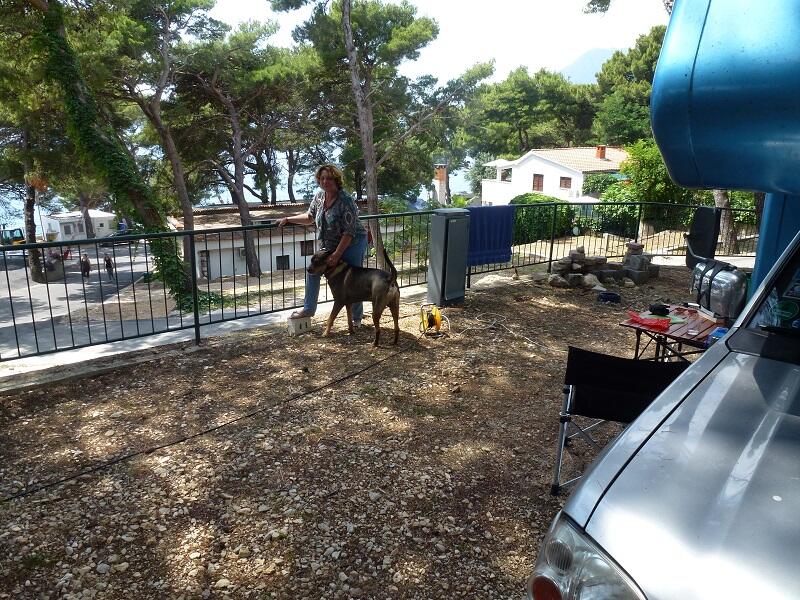 Kurz nach Gradac steuern wir ein Autocamp an, das Uvala borova camp Makarska (https://www.uvalaborova.com). Die Nacht kostet 35 Euro. Der Campingplatz, der zum Ortsteil Kapeć der Ortschaft Podaca gehört, ist terrassenförmig angelegt. Wir haben eine ganze Terrasse für uns allein, unter Pinien, mit Blick aufs Meer.
