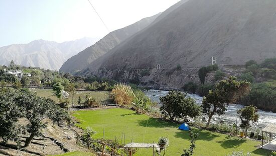Um nicht direkt am ersten Tag eine mega Tour zu machen, entscheiden wir uns, zuerst eine Nacht in Lunahuaná zu verbringen. Die Google Recherche ergab, dass man am besten den Bus von Turismo Cañete nimmt, da er direkt nach Cañete Imperial fährt. Von dort nämlich fahren die Combis Richtung Lunahuaná. Am 21 Mai machen wir uns also morgens auf den Weg ins Zentrum von Lima, zur Abfahrtsstelle von Turismo Cañete. Für 10 Soles pro Person 10 kriegen wir unsere Tickets und 20 Minuten später geht es los, leider in einem großen Bogen durch Lima. (für alle, die keine Stadtrundfahrt durch Lima machen wollen: Der Bus hält später auch an der Panamericana an den Paraderos Av Circunvalación und Puente Atocongo, diese sind aber nicht offiziell. Da heisst es dann gut Ausschau halten). Nach einer Stunde Fahrt sind wir raus aus der Stadt und brauchen dann noch zwei Stunden bis Imperial. Die Endhaltestelle ist direkt gegenüber der Abfahrtsstelle für die Combis nach Lunahuaná und so wechseln wir quasi von einem Fahrzeug ins nächste. Der Combi füllt sich schnell und wir fahren 45 Minuten nach Lunahuaná.