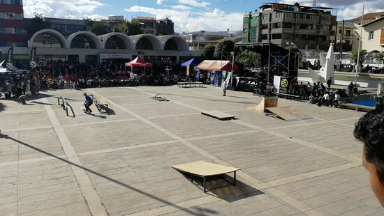 Später gehen wir zur Plaza Huamanmarca, auf der es heute ein Wettbewerb der Skater gibt. In der herrlichen Sonne schauen wir den Jungs bei seinen Kunststücken zu.