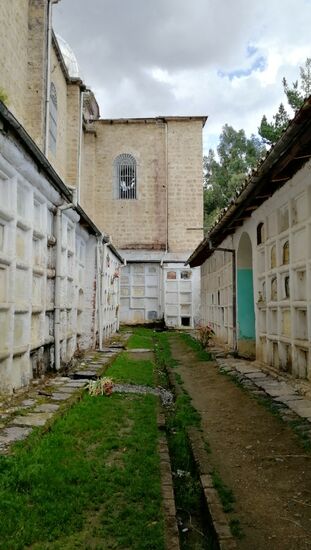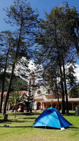Der Konvent hat in der Mittagszeit geschlossen und wir müssen bis drei Uhr Nachmittags warten, um ihn zu besuchen. Wir gehen in ein kleines Lädchen und fragen die Señora ob sie weiss, ob wir hier eine Nacht zelten könnten. Sie meint ja, es sei kein Problem, wir sollen nachher den Padre fragen, aber er würde zustimmen und wir könnten unser Zelt jetzt schon aufbauen. Gesagt, getan, schnell ist das Zelt aufgebaut. Wenig später geht der Padre aus dem Gebäude Richtung Straße und Carlos fragt nach der Erlaubnis, über Nacht auf dem Gelände des Konvents bleiben zu können Eine Nacht sei in Ordnung, ist seine Antwort und wir bedanken uns.