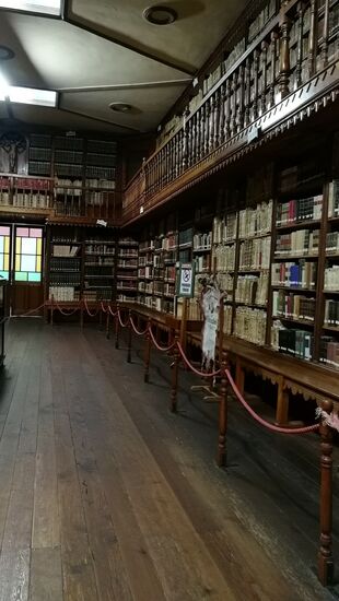 Fotografieren dürfen wir nur in bestimmten Räumen. Wir erlauben uns dennoch, zwei Fotos in der alten Bibliothek zu machen, dem für mich eindrucksvollsten Raum des Konvents.