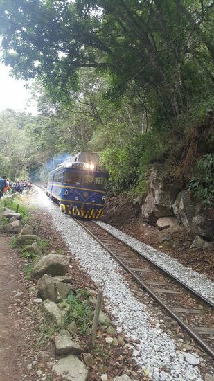 Öfter naht die Inka-Bahn-sie kündigt sich mit lautem Pfeifen an und alle springen schnell von den Schienen.