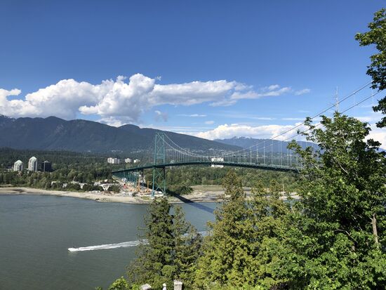 Am nächsten Vormittag ging es los um etwas von Vancouver zu sehen. Ziel ist der Stanley Park im Norden der Stadt. Der Weg durch die Stadt ist schon beeindruckend, wenn man die Skyline der Stadt mit den dahinterliegenden schneebedeckten Bergen sieht.