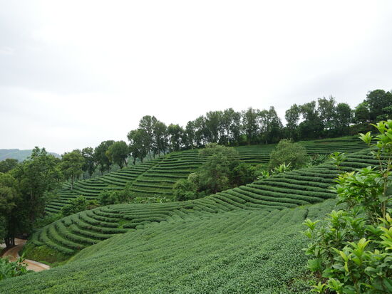 Es hat am gestrigen Abend zu regnen begonnen und noch lange in die Nacht hinein nicht aufgehört. Der Morgen beginnt trocken, aber als wir auf der 101 Tea Plantation aussteigen, sind unsere Pellerinen und Regenschirme wieder angesagt. Der Besuch der Teeplantage ist ein spezielles Erlebnis. Akkurat geschnittene „Hecken“ ziehen sich Reihe um Reihe dem Hügel entlang. Mittendrin befindet sich die Teefabrik. Wir werden zum Teedegustieren eingeladen. Wir erhalten alle ein winziges Tässchen, und vor unseren Augen brüht eine Angestellte verschiedenen Tee auf: Oolongtee, Jasmintee, roter Tee, Ginsengtee etc. Ein wunderbares Geschmackserlebnis!