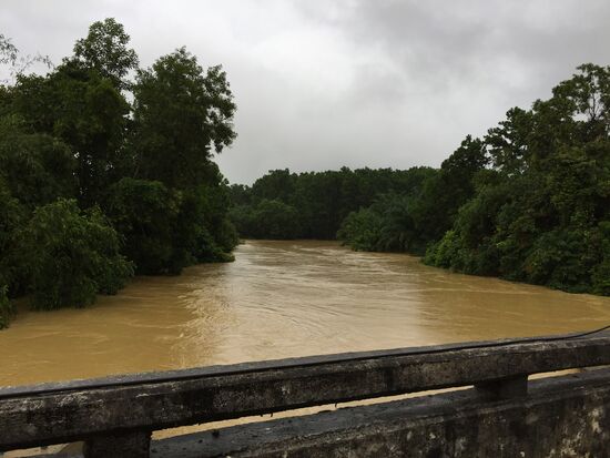 Das Wasser fliesst hier in Küstennähe ins Meer. Gerne würden wir diese Massen auffangen und in die grossen Teile Thailands schicken, die unter Dürre leiden. Es ist seit einem Jahrzehnt die schlimmste Trockenheit. Es hat zwar geregnet (die Wälder waren alle grün, die Reisfelder jedoch teilweise ausgetrocknet), aber zuwenig. Die Kulturen hier sind hier darauf angewiesen, dass es viel regnet in der Regenzeit. Wieviele Bauern werden wohl um die Ernte bangen?